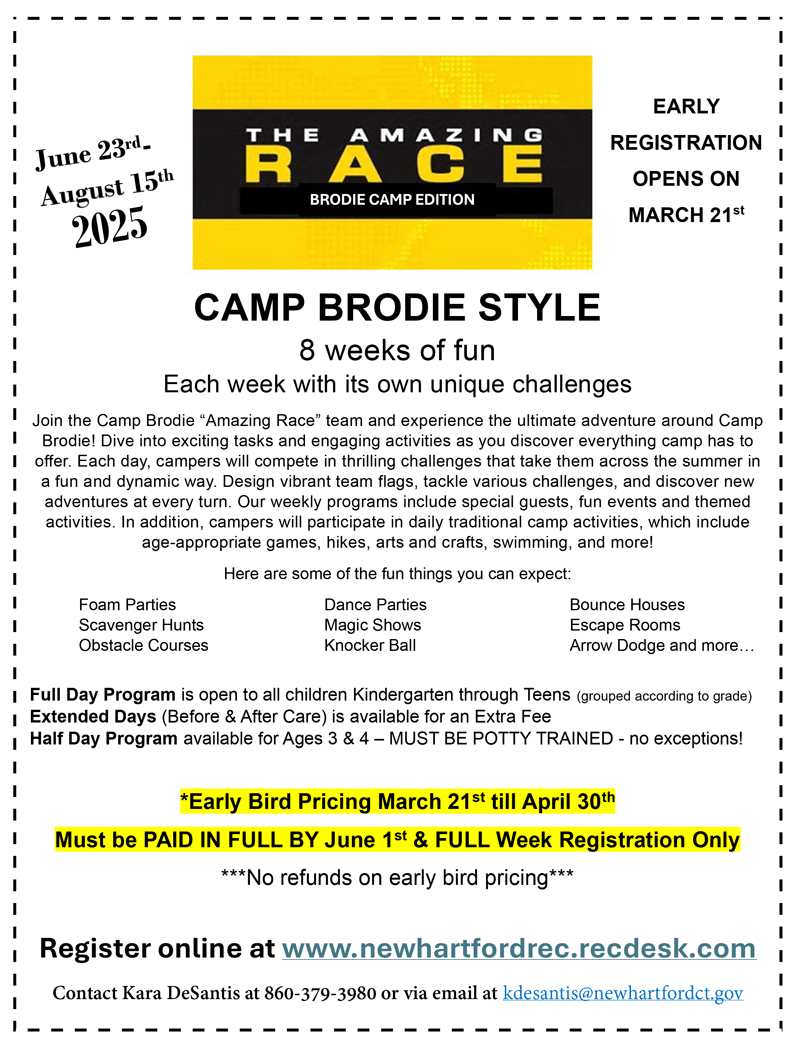 Join the Camp Brodie “Amazing Race” team and embark on the ultimate camp-wide adventure! Each day, campers will take on creative tasks, energetic competitions, and hands-on activities that showcase the very best of what Camp Brodie has to offer. From designing team flags to conquering new challenges, there’s something fresh and thrilling around every corner.
